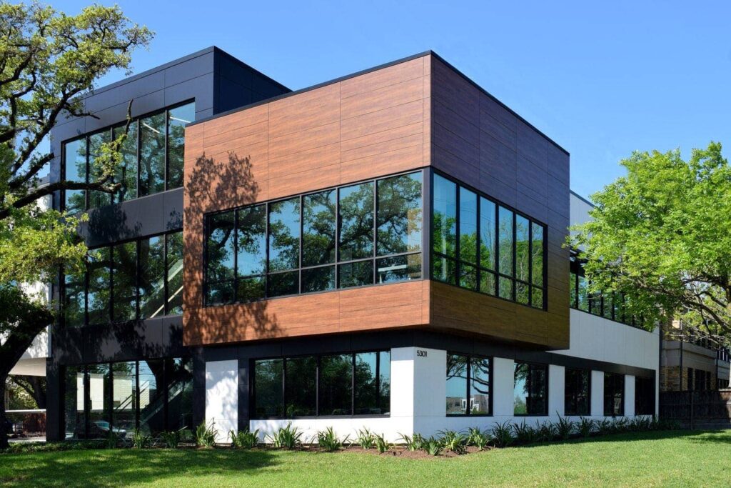 FunderMax Exterior is a high-quality exterior rainscreen cladding product. Available in large format panels, it is perfect for creating long lasting rainscreen facades and for cladding balconies.